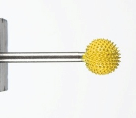 LA PUNTA SFERICA IN CARBURO E' DOTATA DI DENTI MOLTO RESISTENTI E TAGLIENTI DISPOSTI IN UNO SCHEMA UNICO.
