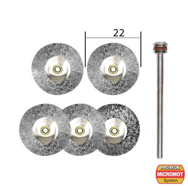 PROXXON – Spazzole in filo d’acciaio Ø22mm, 5 pz + codolo – 28952