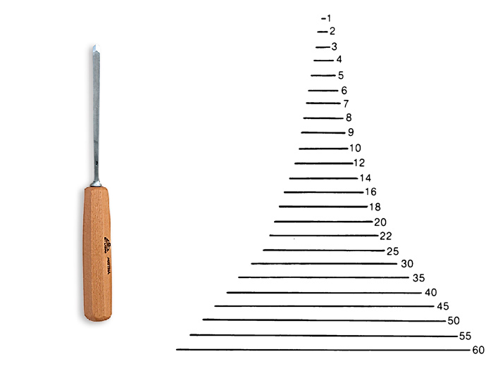 Serie 55 - sgorbie con manico, forma lunga e lucidata, affilate