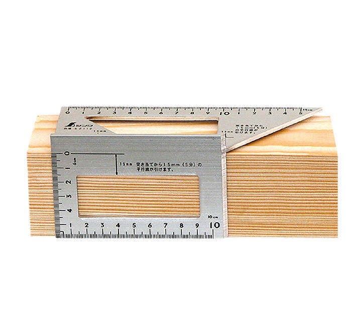 Per applicazione simultanea di tracciatura di base e in altezza per tagli a 45 ° e/o 90° su listelli e legni squadrati. Questo fa risparmiare tempo e migliora la precisione nella produzione di tagli obliqui e tagli a troncare. Gli incavi nella squadra permettono di tracciare gli angoli opposti e/o sono adatti per lo spostamento parallelo. Alluminio anodizzato, con scala graduata mm profondamente incisa.