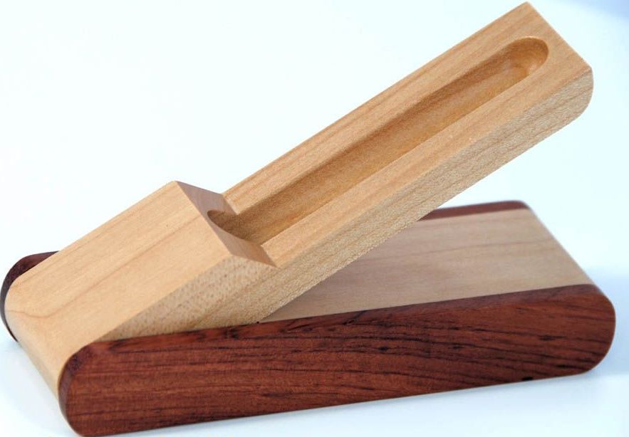 Astuccio portapenne in legno di acero chiaro e rosso