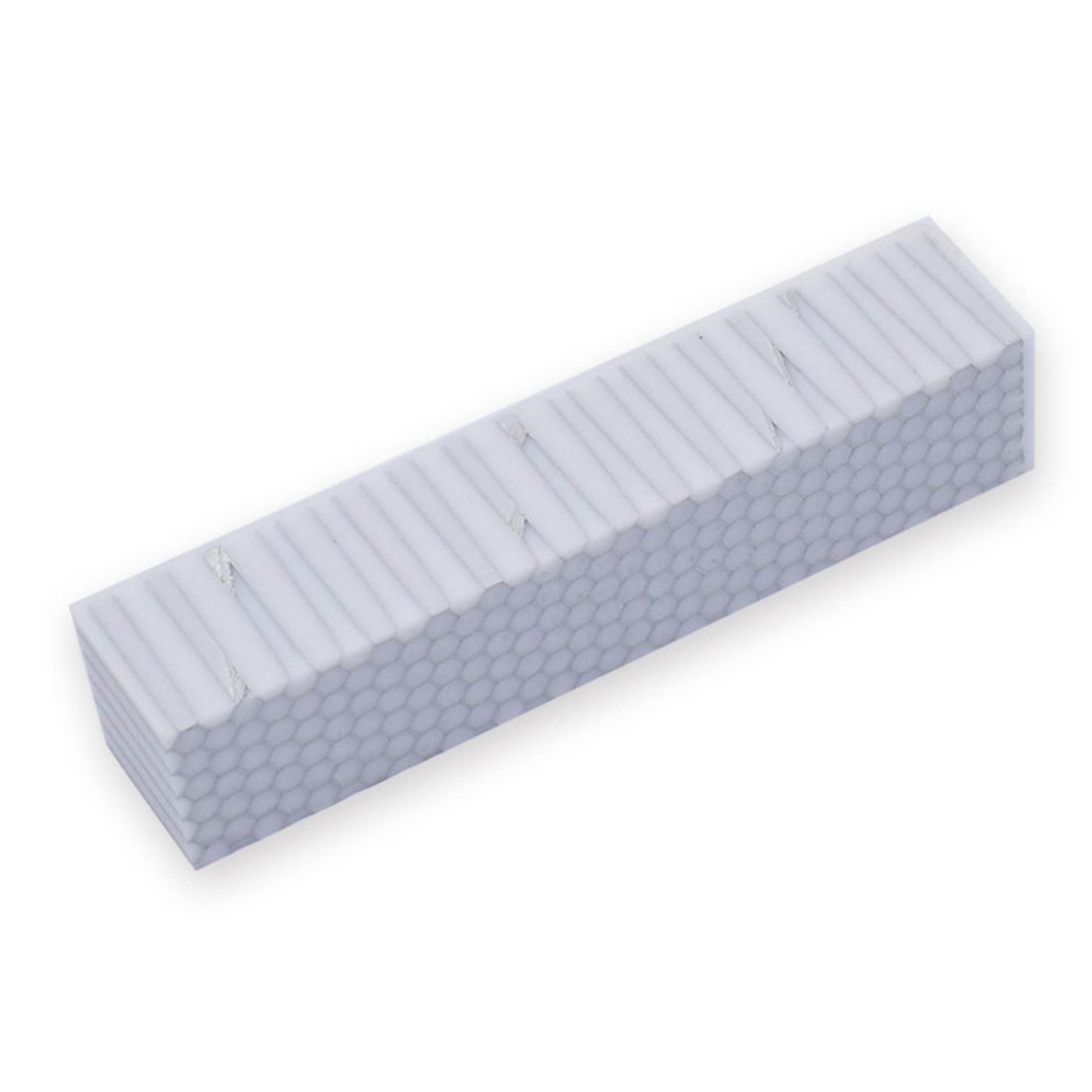 Blocchetto in resina color bianco e argento con motivi a nido d’ape. Questo modello, unico nel suo genere, è ideale per la realizzazione di penne eleganti e di alta qualità.