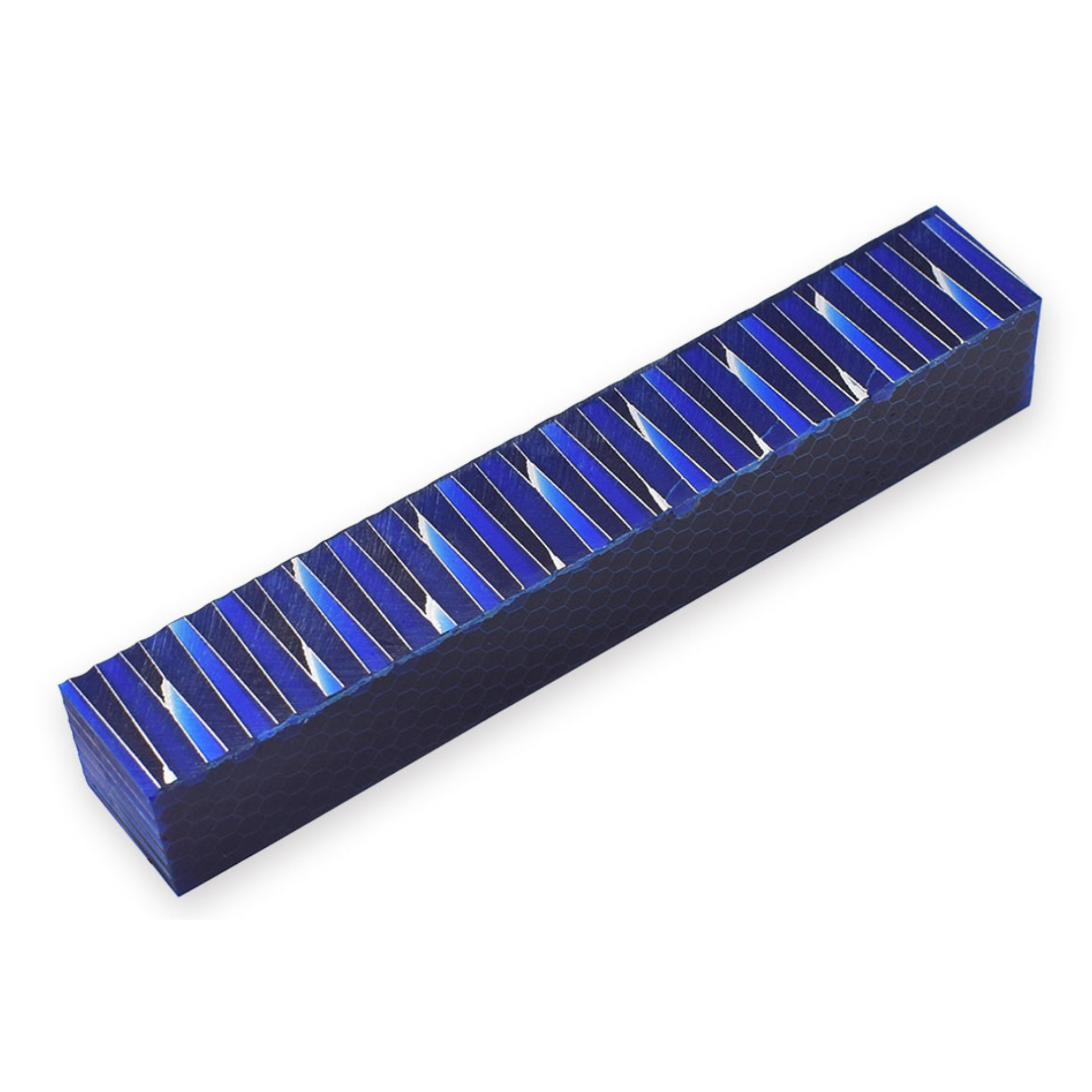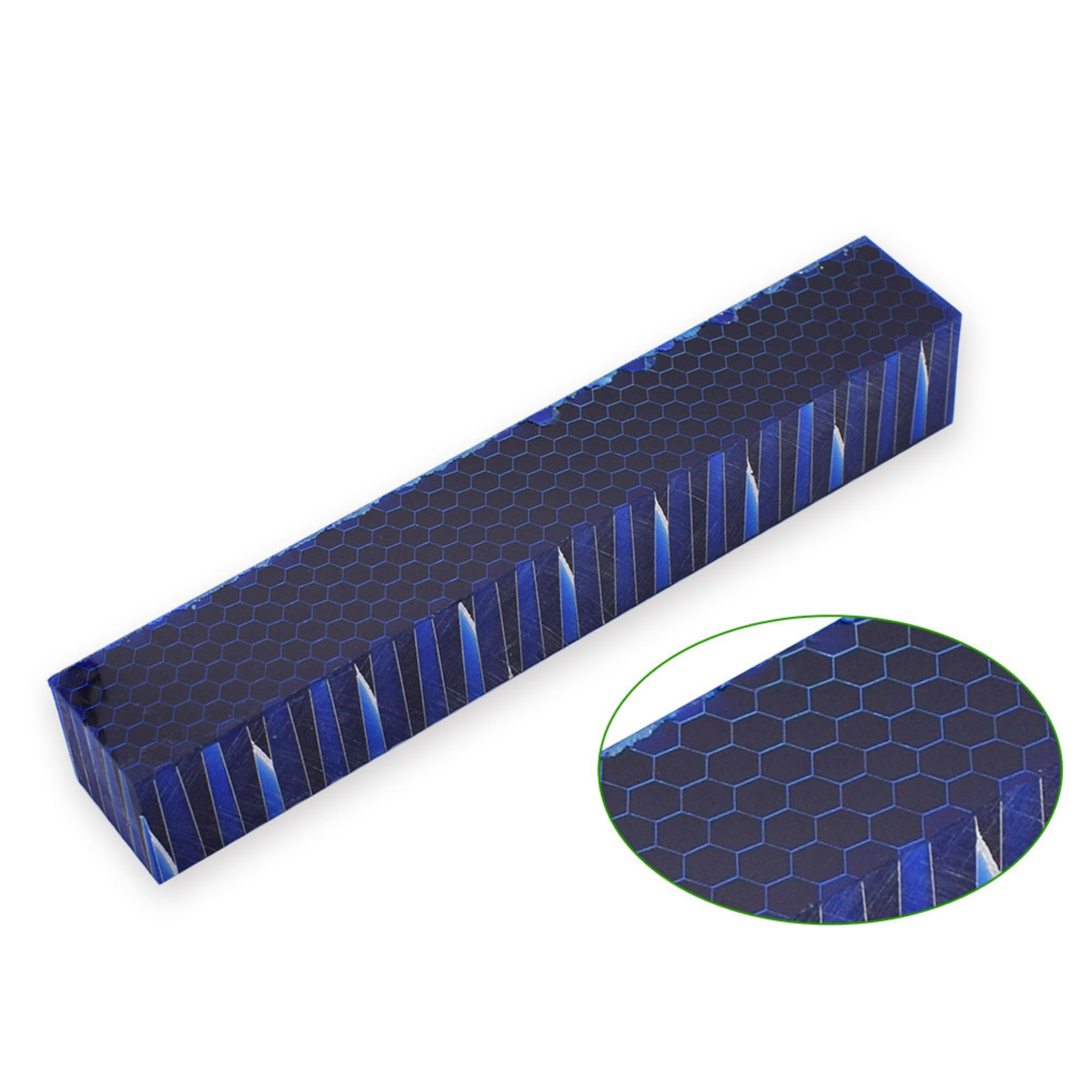 Blocchetto in resina color verde e argento con motivi a nido d’ape. Questo modello, unico nel suo genere, è ideale per la realizzazione di penne eleganti e di alta qualità.