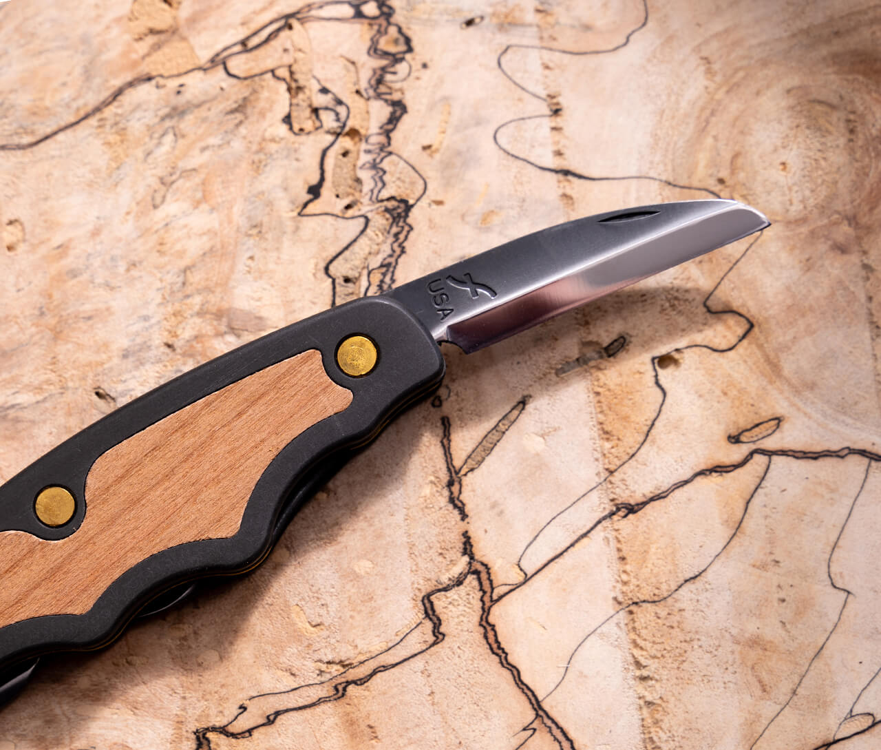Il Tri-Jack Pro ha tre lame che si bloccano in posizione: un coltello da sgrossatura, un coltello da dettaglio e un mini-coltello da taglio. Il coltello da sgrossatura è ottimo per modellare superfici e creare texture, mentre i coltelli da dettaglio e da taglio consentono di effettuare facilmente i tagli più fini. Il design dell’impugnatura a pistola riduce al minimo l’affaticamento della mano ed è realizzato in alluminio di qualità aerospaziale con un intarsio in ciliegio tagliato a un quarto.