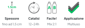 Facilità d’uso: rapporto di miscelazione 2:1 per colate da 1 mm a 1,5 cm.