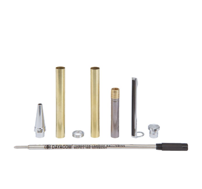 Kit di montaggio di alta qualità per penne a sfera in ottone con clip infrangibile. Ricambio con sfera in carburo di tungsteno, inchiostro a base oleosa. Per diametro di foro 7 mm.