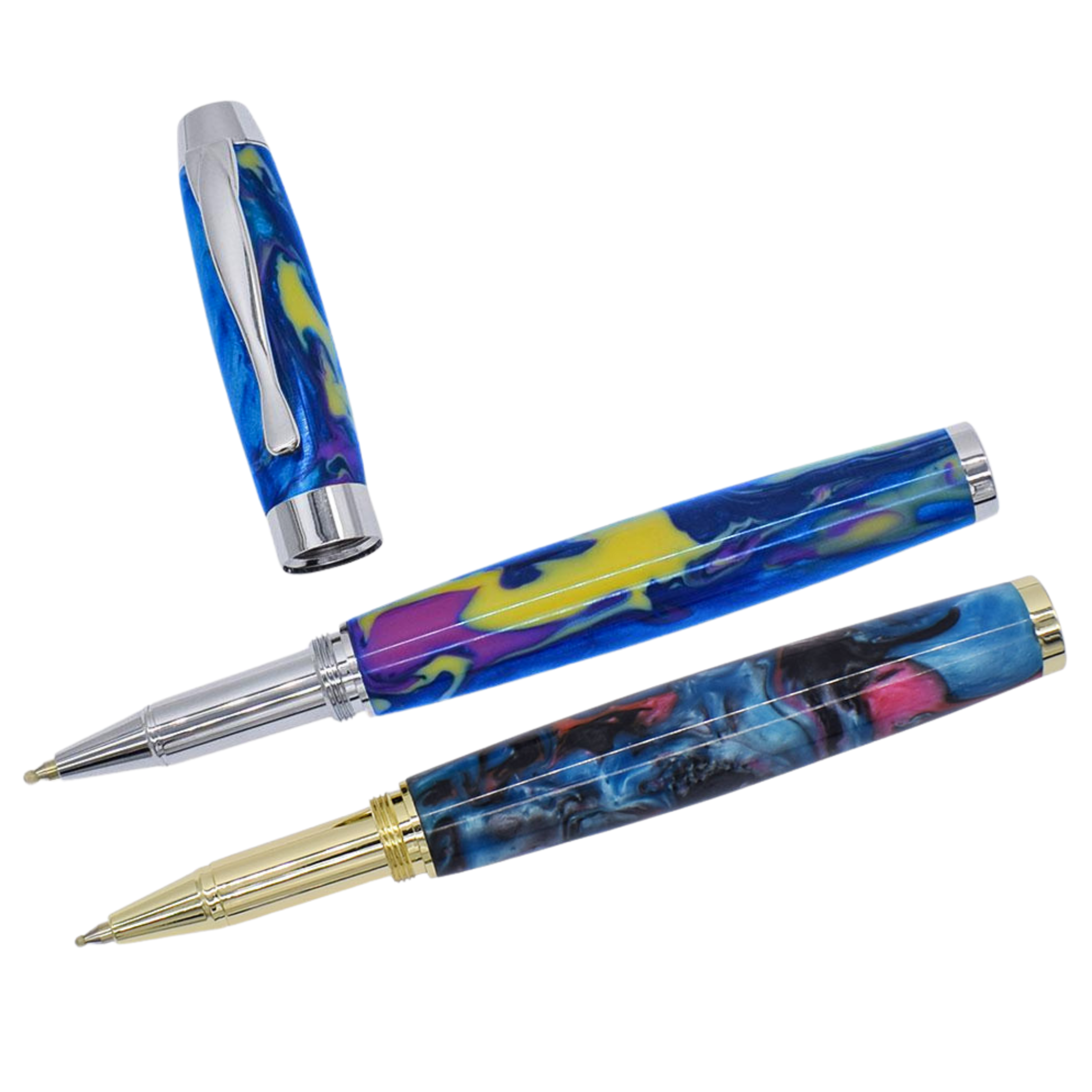 Color chromo, nuovi kit di penne rollerball manager con fascia centrale piatta e cappuccio terminale.