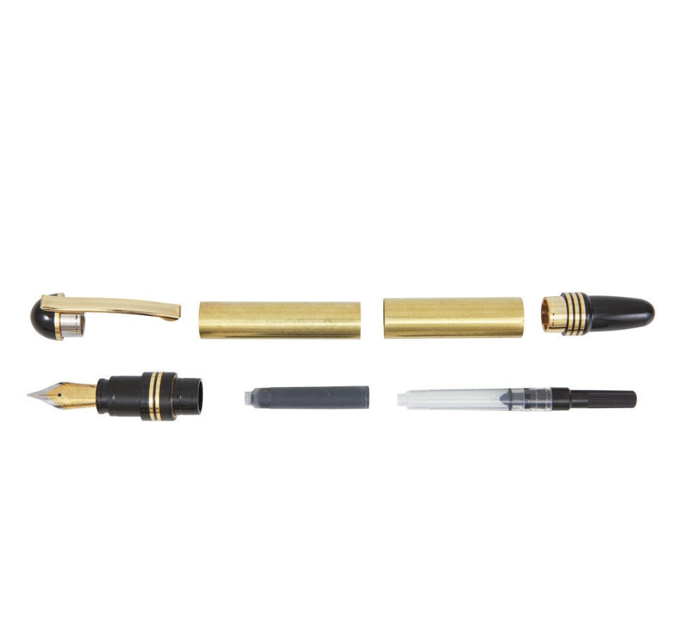 La stilografica è provvista di un pennino dorato (10 carati) prodotto in Germania. La punta del pennino è realizzata in lega di iridio di alta qualità. Il kit contiene nove singoli pezzi di montaggio. La parti sono in ottone e, a seconda del modello, cromati o placcati oro 24 carati. Per diametri di foratura 12,25 e 13,25 mm.