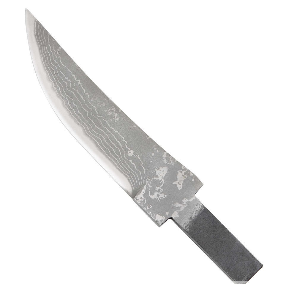 Lama forgiata per l’assemblaggio di coltelli da caccia o da esterno. L’anima è in Acciaio Carta Blu, tagliente a lungo e racchiuso da 14 strati di acciaio Suminagashi che crea un particolarissimo disegno. Durezza 62 HRC, ossidabile. Lucidata e preaffilata, pronta per l’uso.