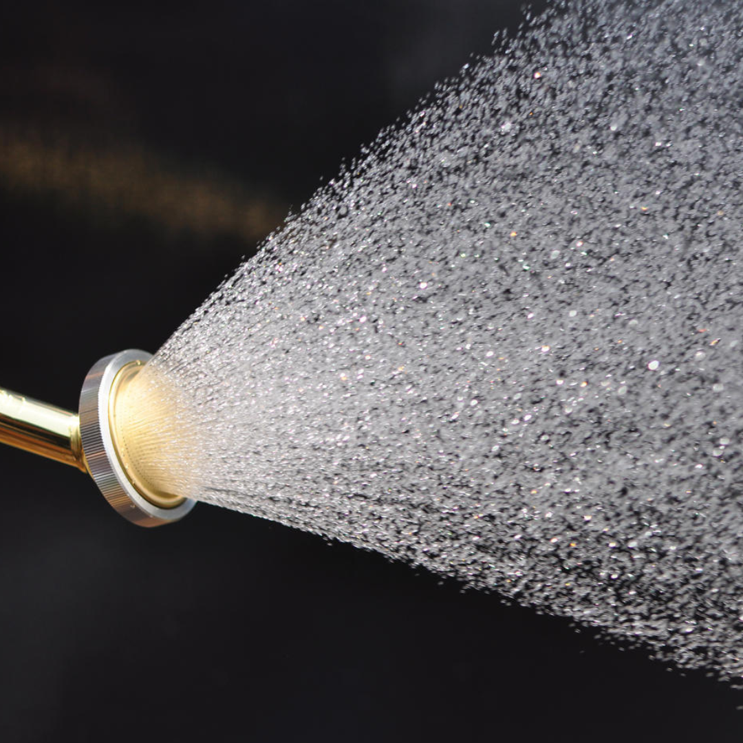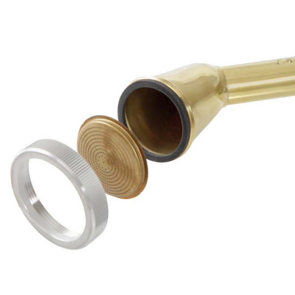 Da oltre 350 anni l’azienda giapponese Ichihana produce lance per annaffiatura in pregiato metallo Muntz, una lega di ottone forgiabile. L’ottone lavorato a mano assorbe rapidamente il calore corporeo e svolge azione antibatterica grazie all’elevata percentuale di rame. I fori del setaccio vengono ricavati tramite processo corrosivo su ambo i lati, che in sezione trasversale assumono così una forma a clessidra. Grazie a questo metodo produttivo si ottiene un getto a spruzzo fine e preciso. Con sistema di raccordi rapidi per tubo da giardino ½ pollice.