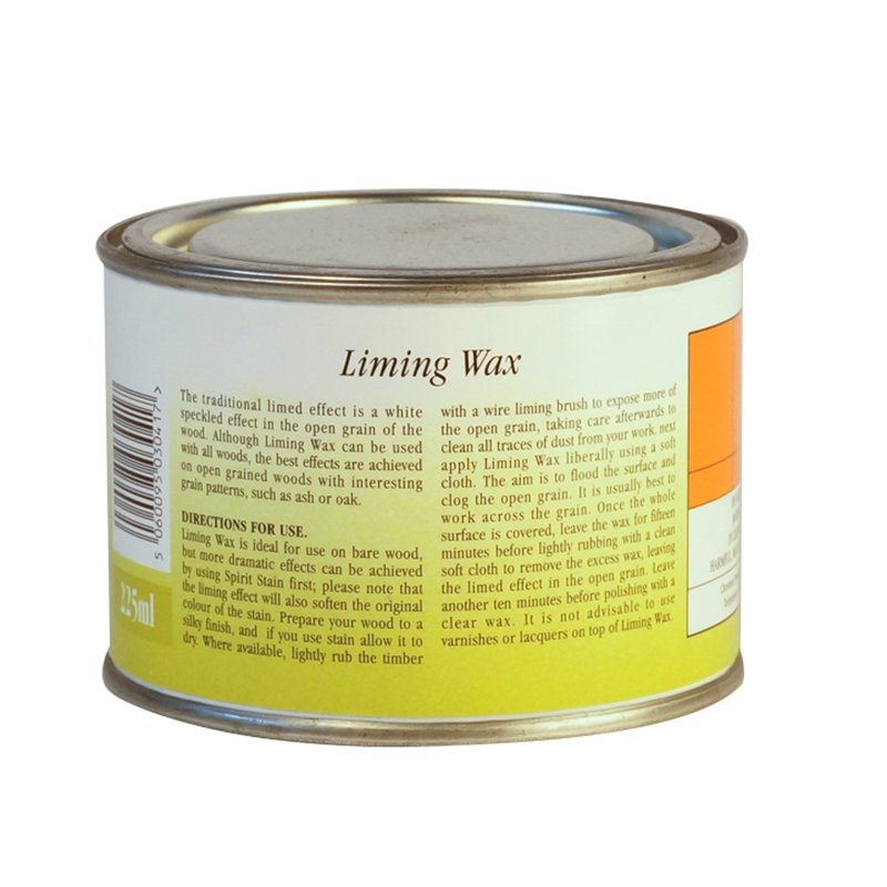 Preparare una superficie liscia( strofinare un pennello metallico per esporre maggiormente le venature del legno), assicurandosi di eliminare tutta la polvere prima di applicare la cera. Applicare quindi Liming Wax con un panno morbido preferibilmente seguendo le venature. Quando la superficie e completamente ricoperta lasciar agire per 15 minuti e poi rimuovere delicatamente l’eccesso della cera con un panno pulito. Lasciar asciugare ancora per 10 minuti prima di applicare un lucidante o cera chiara.