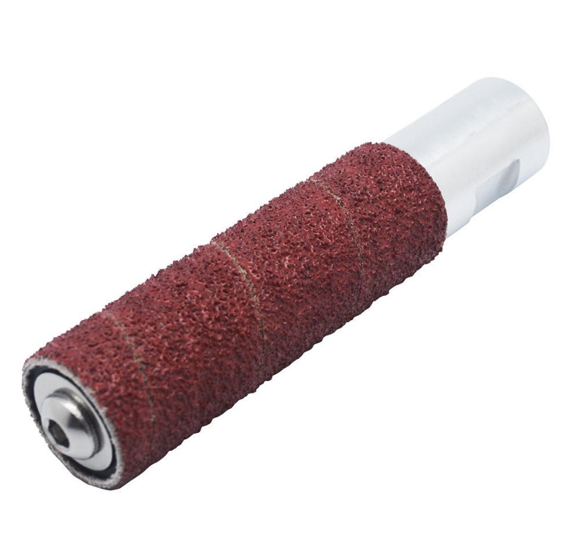 Mandrino di fresatura per lavori a mano libera con macchinari a motore (smerigliatrice angolare o trapano). In questo modo è possibile, ad esempio, levigare in modo rapido ed efficace gli incavi di oggetti scultorei, le cortecce, ecc. Diametro dei manicotti abrasivi 19 mm. Lunghezza 70 mm, incl. manicotti di levigatura P40, P80, P120, P240, un pezzo ciascuno