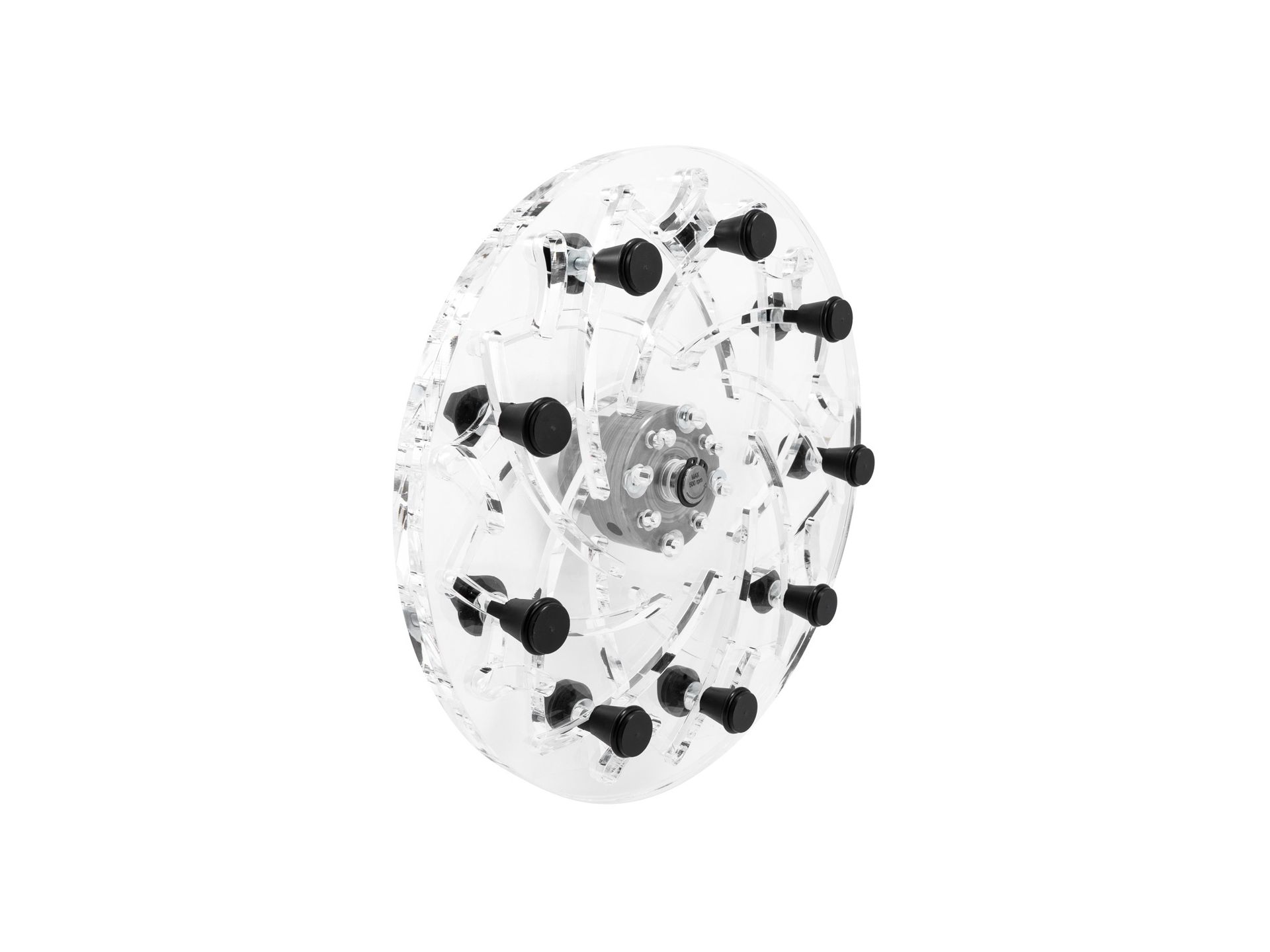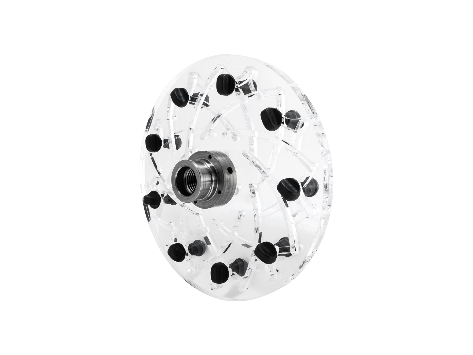 Meccanismo di regolazione molto semplice ed efficace! Spostando le due piastre di montaggio in plastica speciale è possibile fissare in modo sicuro e senza danni anche pezzi torniti finiti per la successiva lavorazione (ad es. per rimuovere i residui di tenuta sul lato inferiore di una vasca, ecc.). Incl. 9 perni di fissaggio standard da 20 mm), che convergono concentricamente.