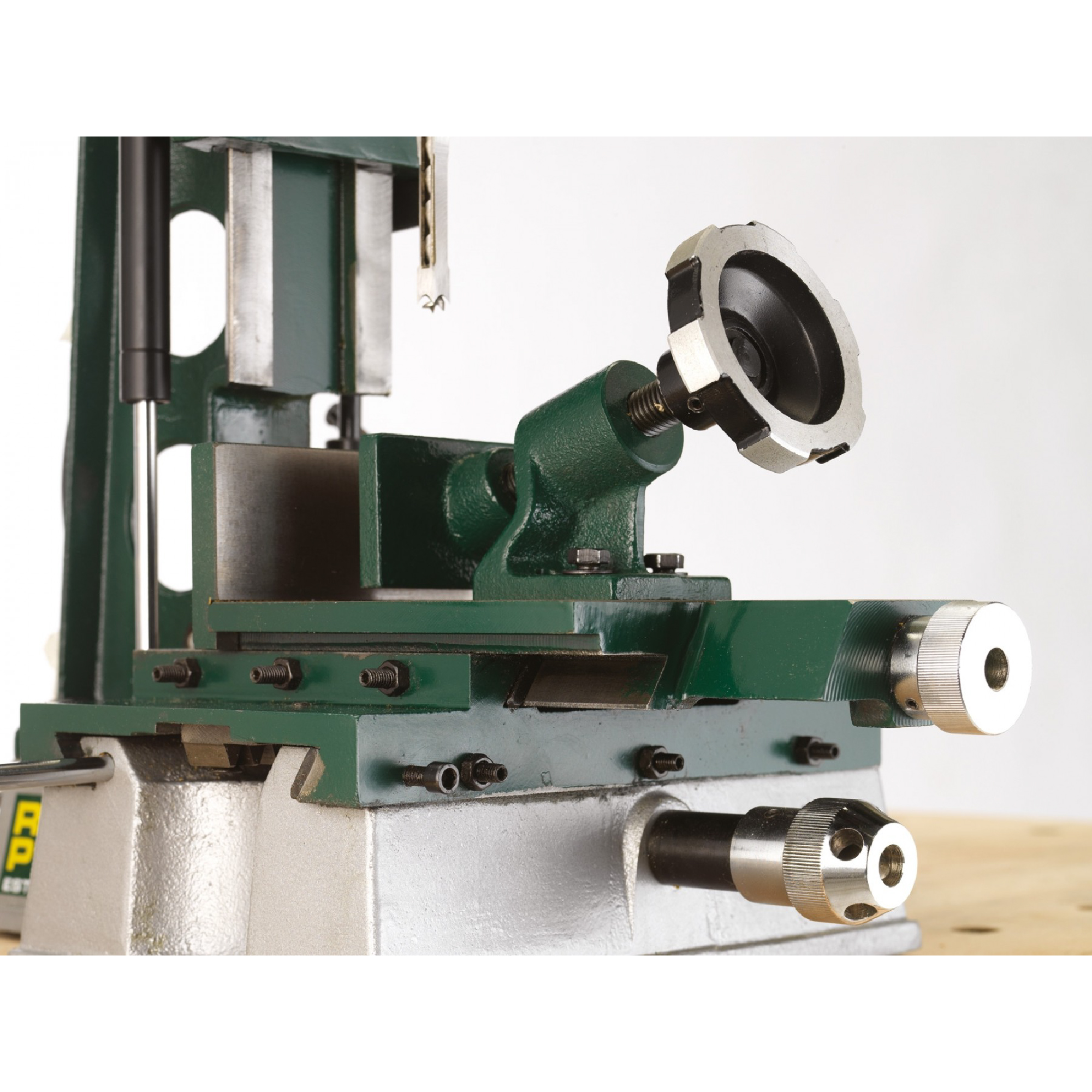 Il tavolo è in ghisa finemente macinata e si muove senza intoppi e senza sforzo da davanti a dietro e da un lato all'altro su scivoli a coda di rondine lavorati. Per garantire una precisione insuperabile, le diapositive sono completamente regolabili utilizzando le strisce gib facilmente accessibili. Una caratteristica importante del tavolo è il morsetto pesante e solido, che di solito si vedono solo su macchine più industriali, che tiene i pezzi in modo estremamente sicuro, assicurando nessun movimento durante il funzionamento. Il morsetto è anche riposizionabile, consentendo di ospitare una vasta gamma di dimensioni del legno.