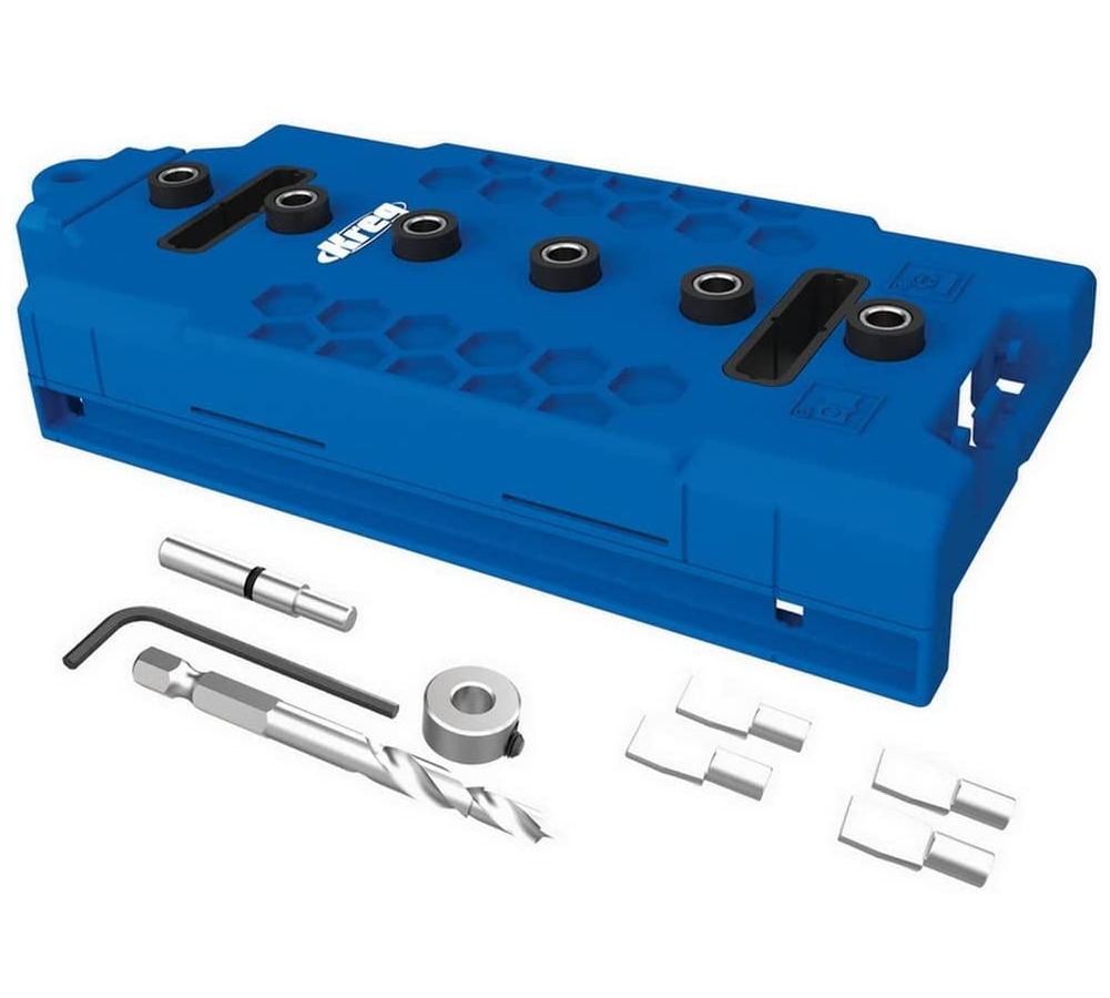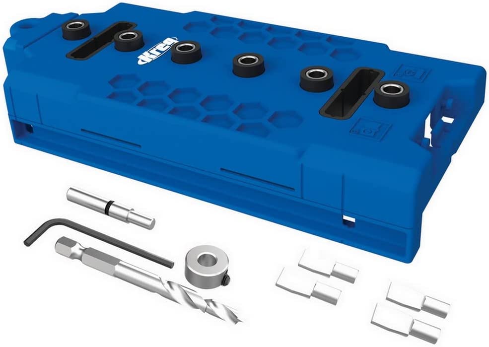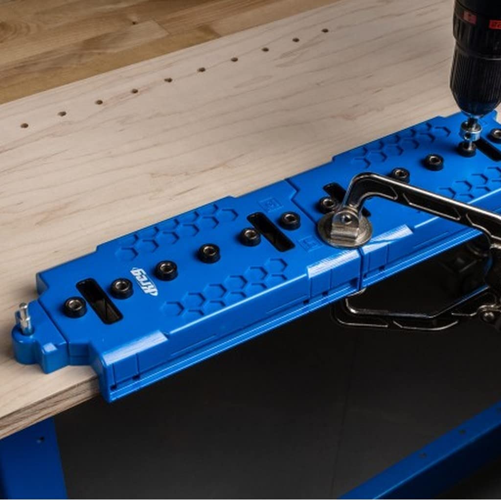 Sia che tu stia aggiungendo scaffali a mobili esistenti o costruendo da zero, creare i fori dei perni dello scaffale è facile. Usa la recinzione per allineare la maschera con il bordo del pezzo in lavorazione per file dritte e precise. Praticate rapidamente sei fori in un'unica configurazione o collegate una seconda maschera a perno per forare file di fori più lunghe con la stessa spaziatura uniforme.