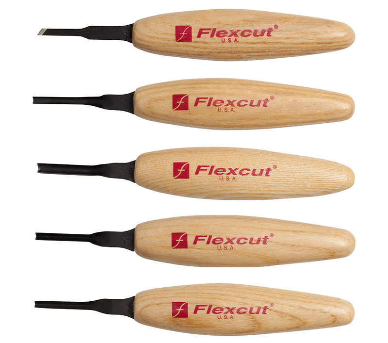 Micro set di utensili a profilo misto da 3 mm. Sono perfetti per le miniature, per ripulire le creste create dai tagli di sgorbia, per pulire e accedere agli angoli stretti e per scolpire dettagli fini come la bocca e gli occhi, pelliccia e piume.