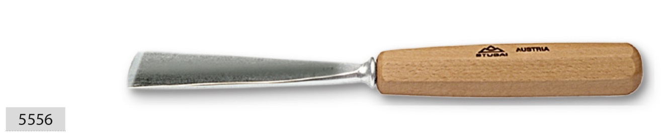 Le lame delle sgorbie STUBAI sono prodotte con uno speciale acciaio al cromo-vanadio sottoposto ad un moderno trattamento di tempra per ottenere una durezza di 58-60 HRC (Hardness Rockwell Cone) garanzia di una lunga durata di taglio.