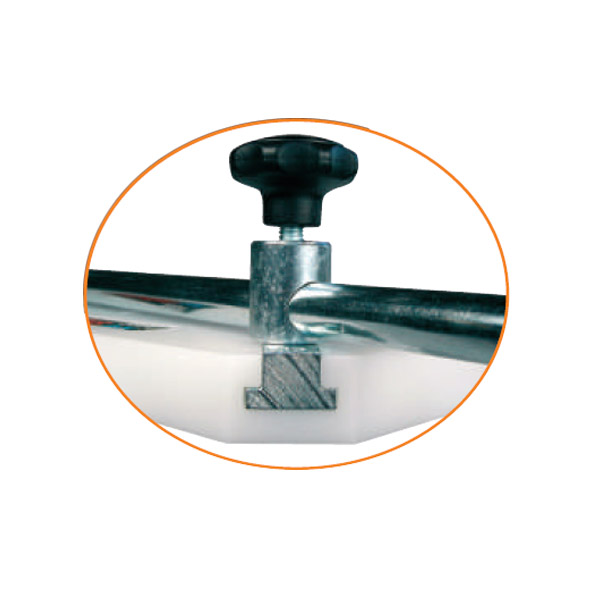 - Scanalature a T di precisione con guide scorrevoli in acciaio.