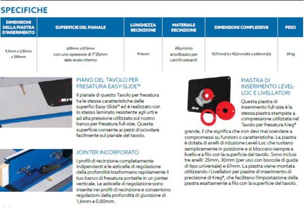 Tavolo con Pianale per fresatura di precisione falegnameria KREG PRS2100