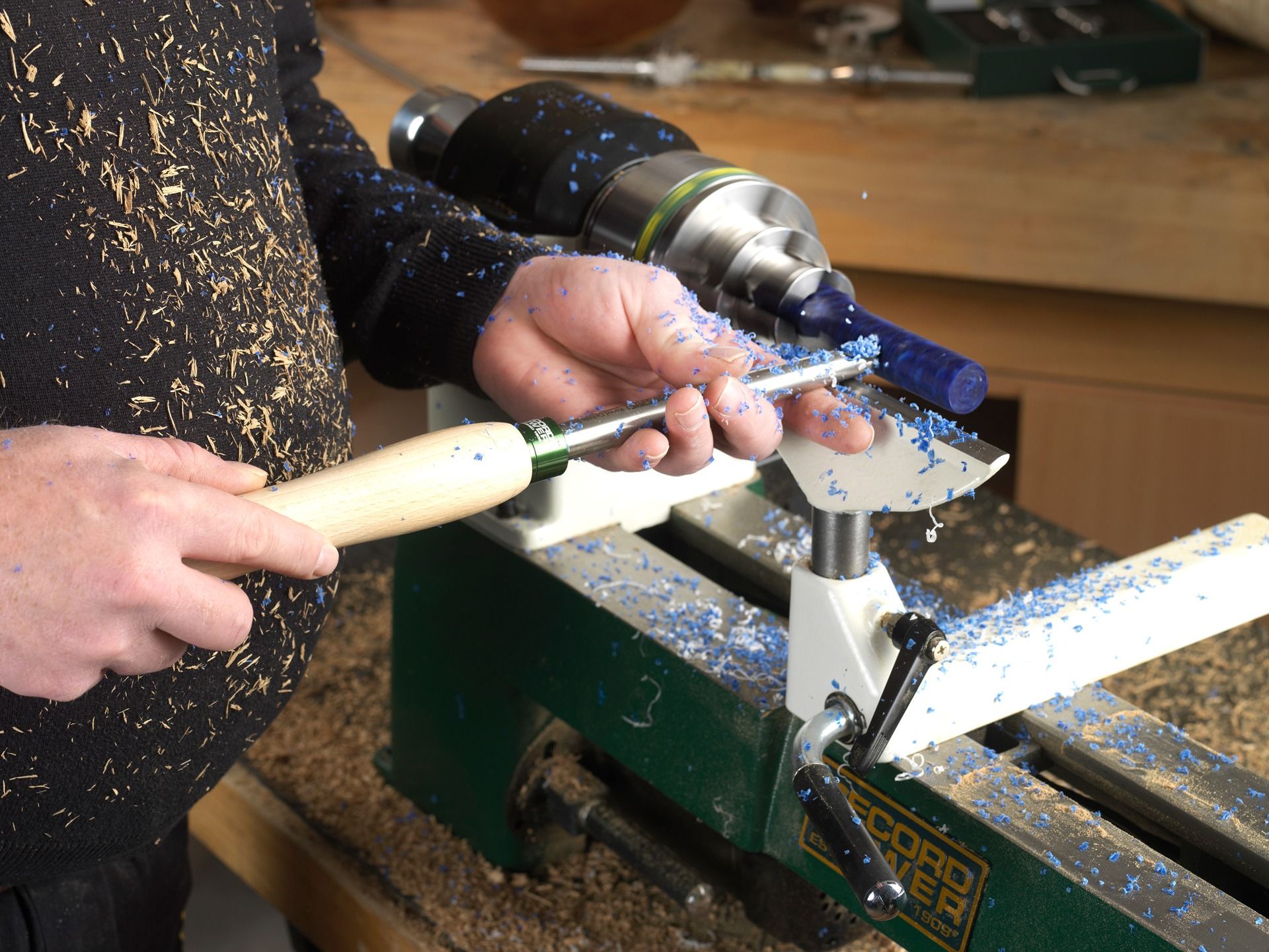 Tornio da banco compatto e di alta qualità con controllo elettronico della velocità: ideale per tornire oggetti più piccoli e complessi, come penne e anelli!